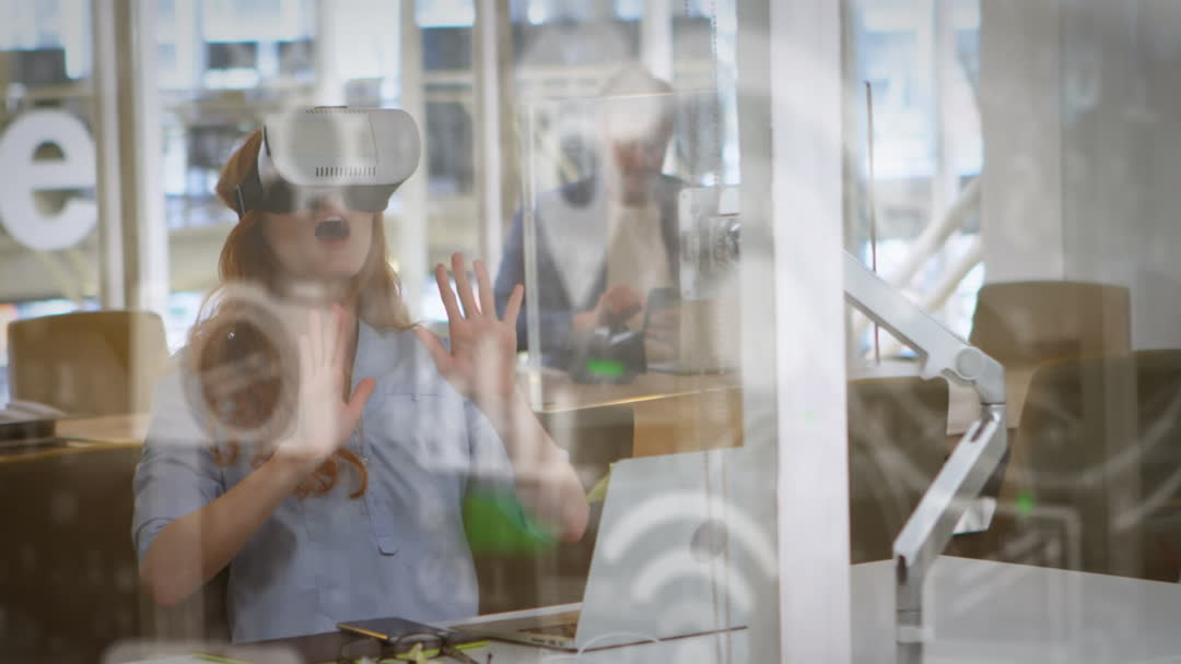 Woman Experiencing Virtual Reality in Modern Office Space Video