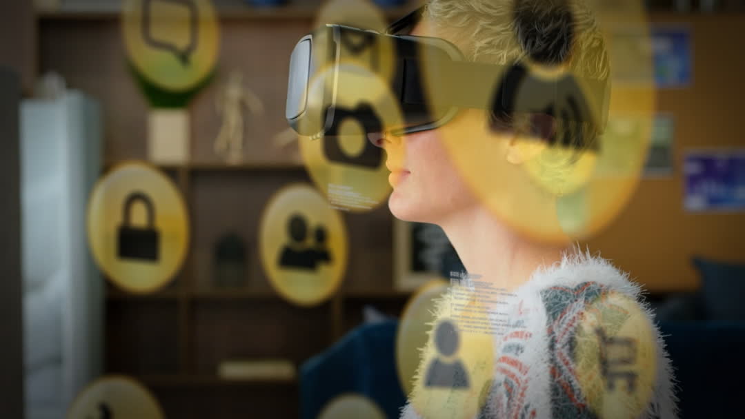href="https://pikwizard.com/video/woman-experiencing-virtual-reality-with-floating-icons/60f3ef03c1507efd243bbeae9a876cde/"