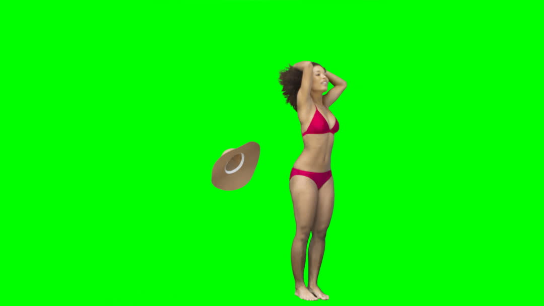 - Woman in Red Bikini Losing Hat Against Green Screen