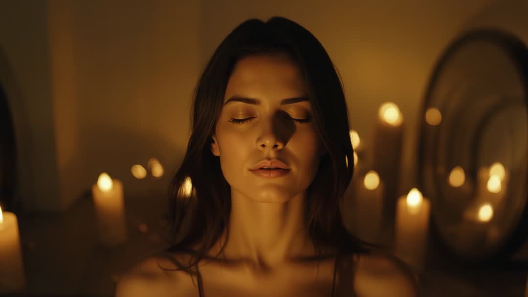 - Woman Meditating Calmly in Candle-Lit Serenity