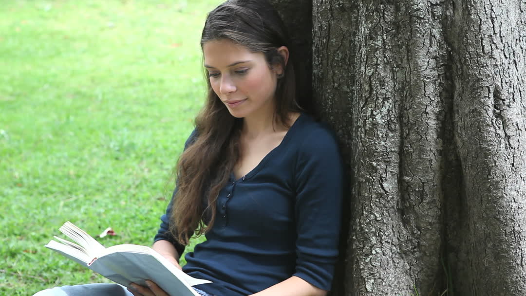 - Woman Reading Book Outdoors Beneath Shady Tree