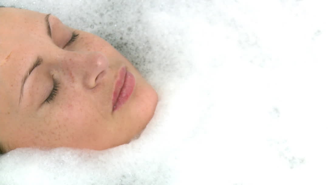 - Woman Relaxing in Bubble Bath with Face Submerged