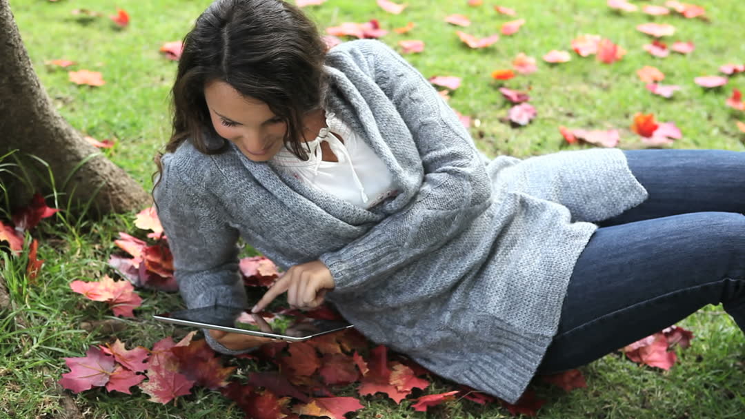 - Woman Relaxing in Park Using an E-Book Device on Autumn Day