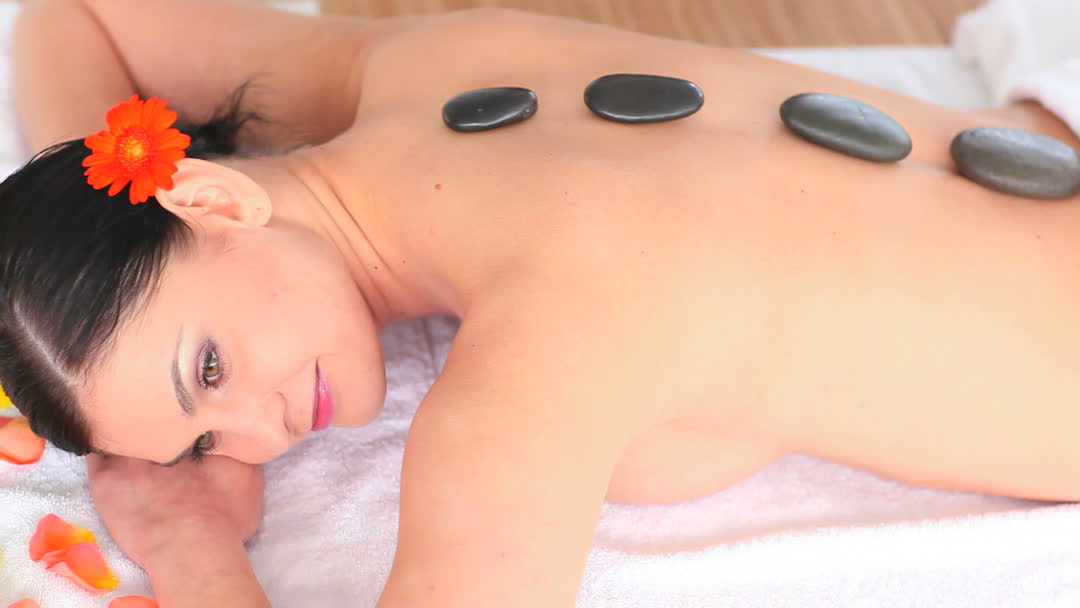 - Woman Relaxing with Hot Stones in Spa Therapy Session