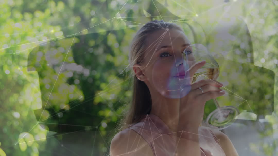 Woman Sipping Wine with Futuristic Network Overlay Video