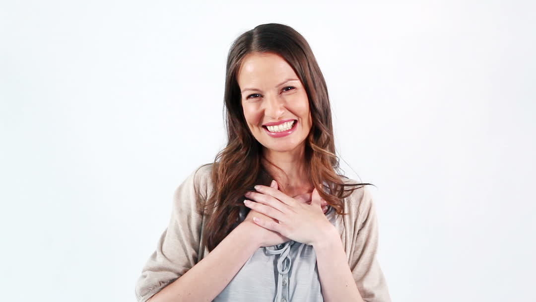 Woman Smiling Gently Hands on Chest Expressing Gratitude Happy Video