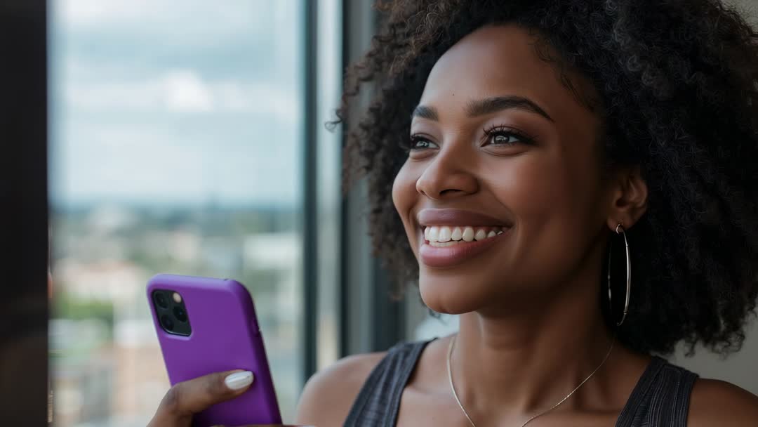 <a target="_blank" href=https://pikwizard.com/video/woman-smiling-while-using-smartphone-near-city-view/260bbd2777386f18fb979d77eb11831b/>PikWizard</a>