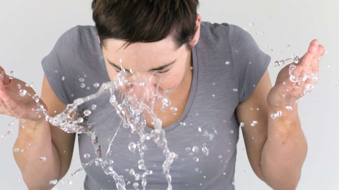 - Woman Splashes Water on Face in High-Speed Motion