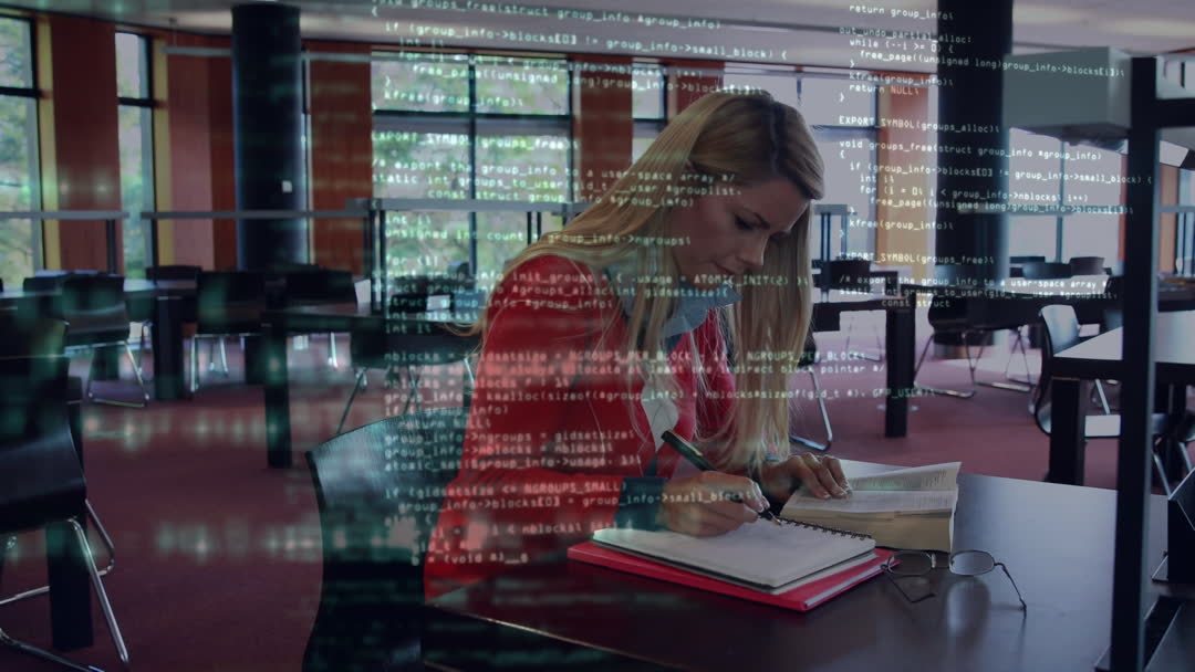 <a target="_blank" href=https://pikwizard.com/video/woman-studying-in-library-with-programming-animation-overlay/9ac33f0786448e8c523532499cc96493/>PikWizard</a>