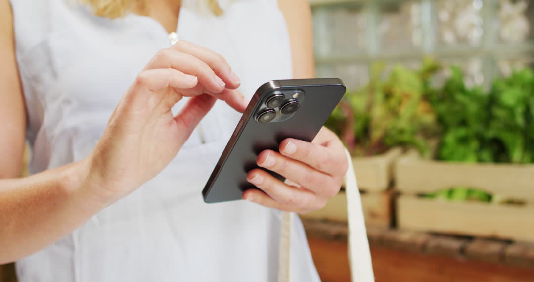 - Woman Using Smartphone for Contactless Payment in Organic Grocery