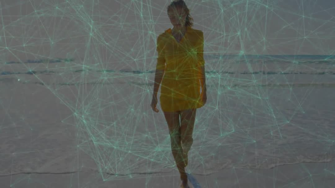 <a target="_blank" href=https://pikwizard.com/video/woman-walking-on-beach-with-digital-connectivity-network/51987da91b97f4657adcfb3b61d34919/>PikWizard</a>