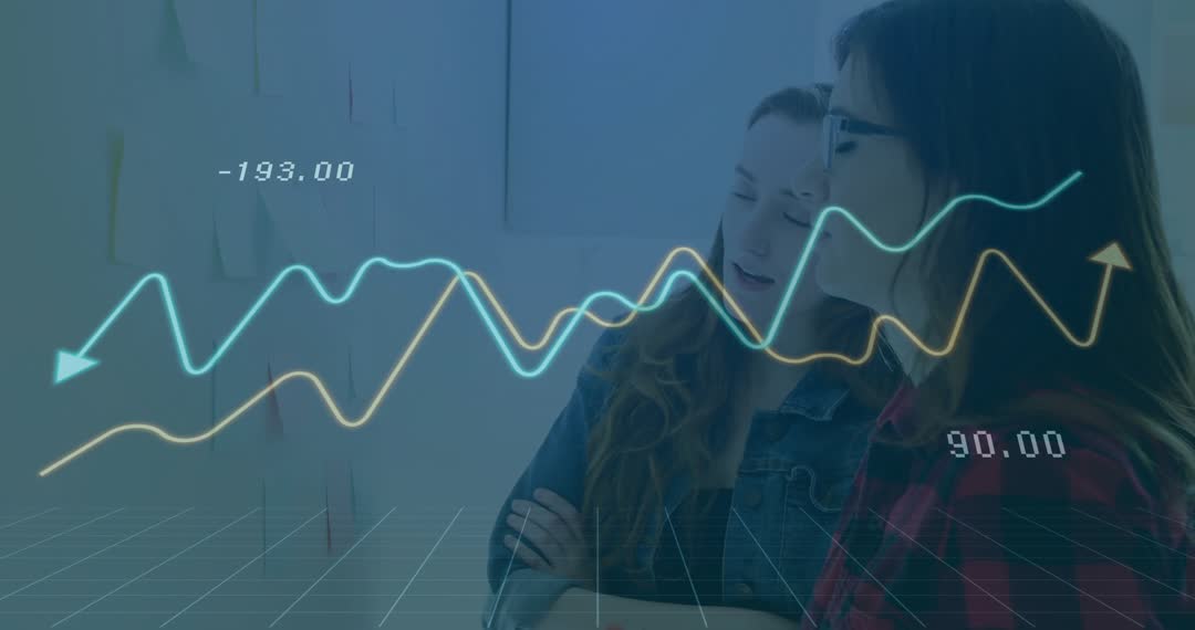 - Women Collaborating on Innovative Business Strategy with Data Overlay