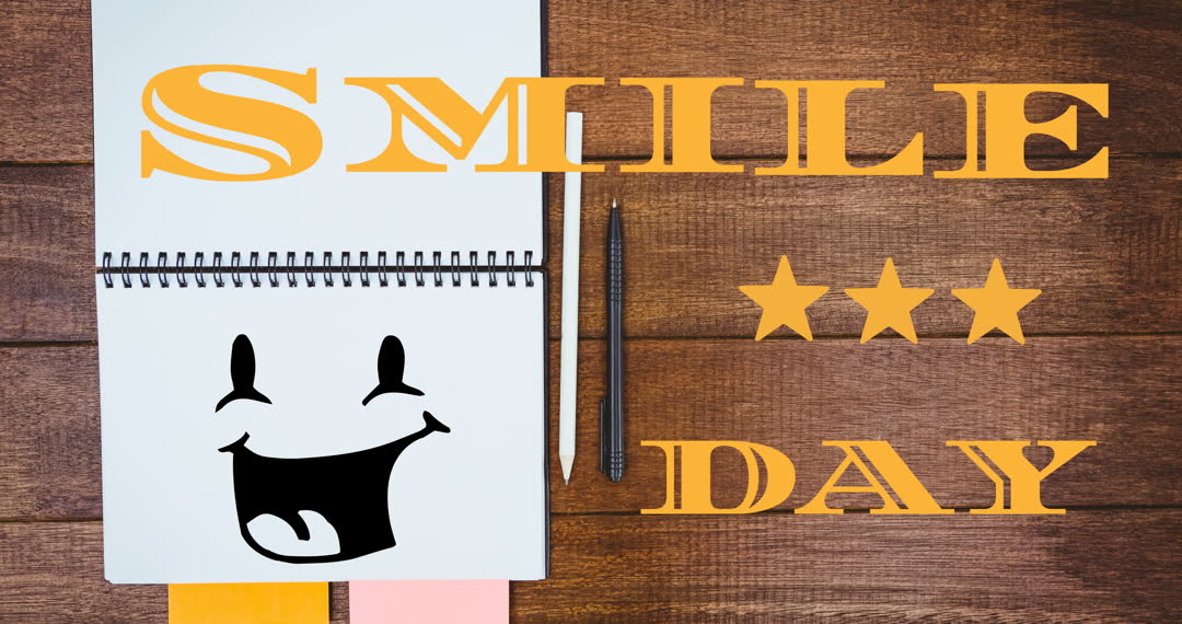 Features colorful paper art font and a smile representation on a wooden table. Ideal for promoting World Smile Day, social media graphics, inspirational blog posts about happiness and positivity, or event announcements celebrating joy and laughter.