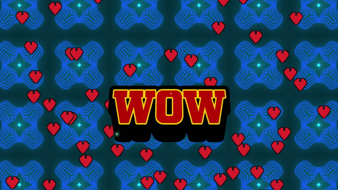 WOW Text with Floating Hearts and Abstract Patterns Video