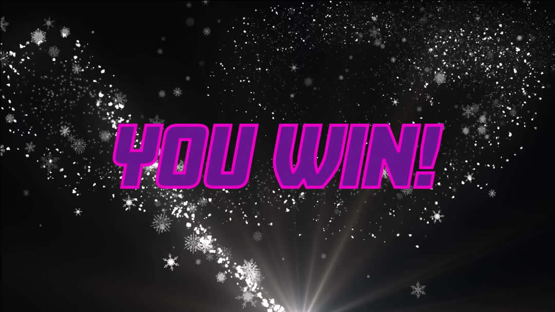 Vibrant and energetic animation featuring 'You Win' text surrounded by sparkling particles and snowflakes on a dark background. Ideal for use in promotional videos, celebratory announcements, gaming victories, and festive digital content. Enhances themes of celebration and success with its bright and joyous visuals.