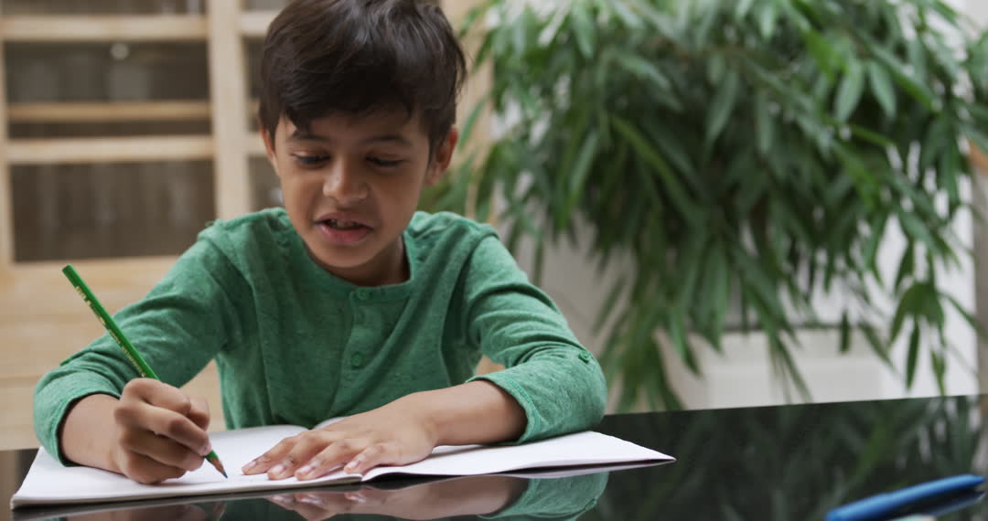 Young Boy Diligently Completing Homework at Home Video