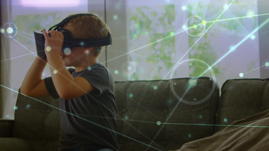 - Young Boy Immersed in Virtual Reality with Digital Connections Overlay