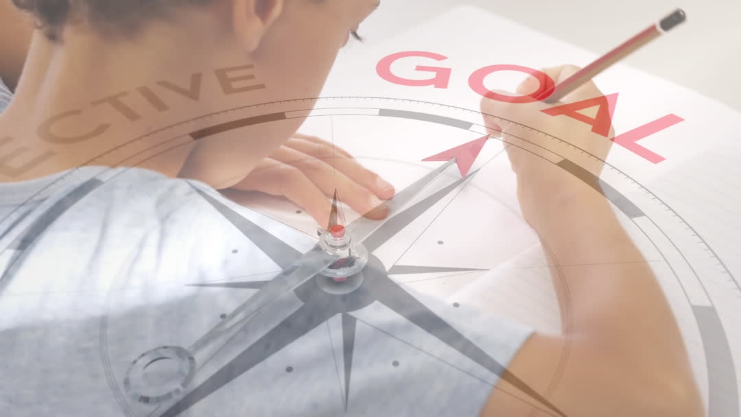 - Young Boy Writing Goals Overlaid by Compass Animation