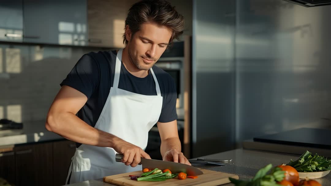 - Young Chef Preparing Fresh Ingredients in Modern Kitchen