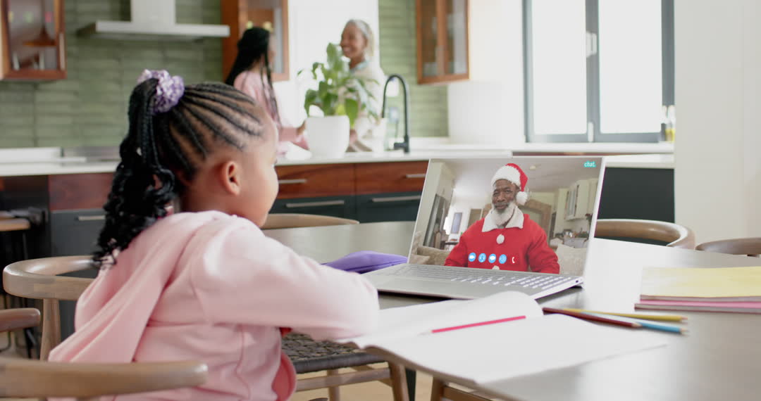 - Young Girl Video Calling with Grandfather Dressed as Santa