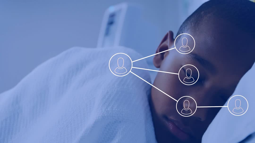Young Patient in Bed with Digital Innovation Nodes Overlay Video
