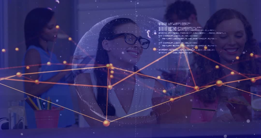 Behind overlapping digital graphics and virtual codes, a team of proactive software developers brainstorms the next insightful technology project, demonstrating connectivity and dynamic workflow. Suitable for use in projects showcasing teamwork in modern workplaces, tech-savvy young professionals, or innovative collaboration. This video frame effectively reflects themes such as digital transformation, innovation culture, and contemporary teamwork dynamics.