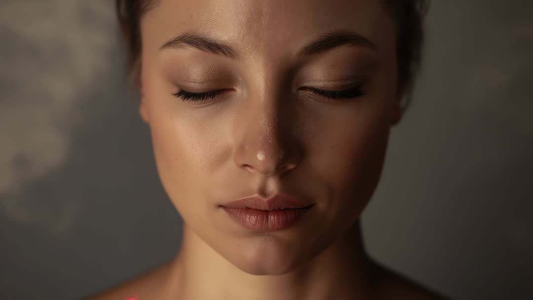 - Young Woman Closing Eyes for Serene Studio Headshot, Soft Warm Closeup Video