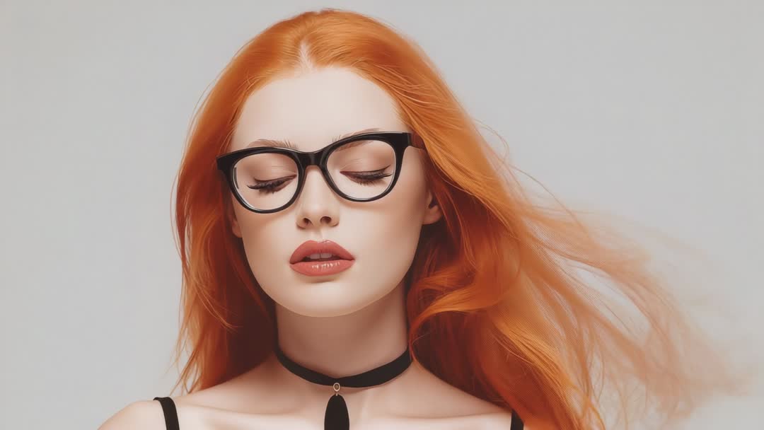 AI Generated Video. Model enjoys gentle breeze accentuating stylish glasses and vibrant red hair, graceful poise emphasizing youthful elegance in minimalistic setting. Ideal for beauty, eyewear advertisements, or contemporary fashion projects targeting youthful audiences.