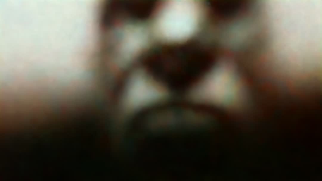 - Zooming on eerie sculpted bust with shifting focus, green tint, dramatic lighting